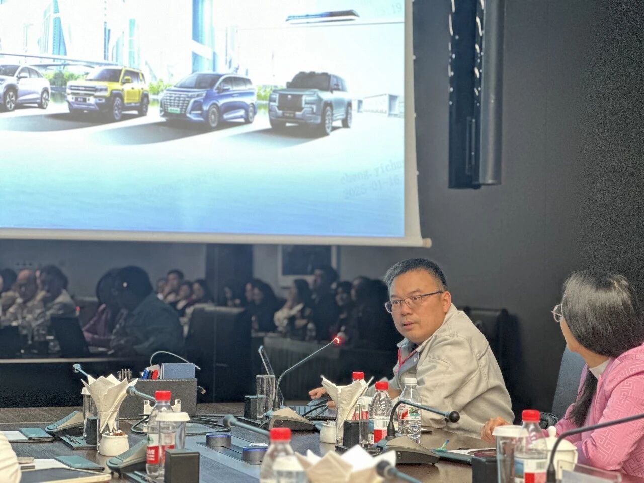 在随后的交流环节,比亚迪十五部研究院电子一部研发经理、大工机械2001级校友程怡春围绕公司业务与技术研发进展进行了分享。他指出,比亚迪坚持“全产业链+全市场”战略,已实现从电池、电机、电控到整车制造的新能源汽车全产业链自主可控。其在2010年率先推出的公交电动化战略,已在国内外市场取得显著成效。在技术创新方面,程怡春校友重点介绍了比亚迪在高频电池、第五代DMI混动系统、易四方平台、云辇智能车身控制系统以及“智驾平权”等方面的关键突破,这些成果充分展现出比亚迪在电动化与智能化融合方面的领先实力。交流过程中,师生还就比亚迪的海外布局、供应链协同、技术迭代路径等议题与现场专家展开热烈讨论,进一步对比亚迪从“技术为王”迈向“产业生态”构建的发展脉络有了更立体的认识。