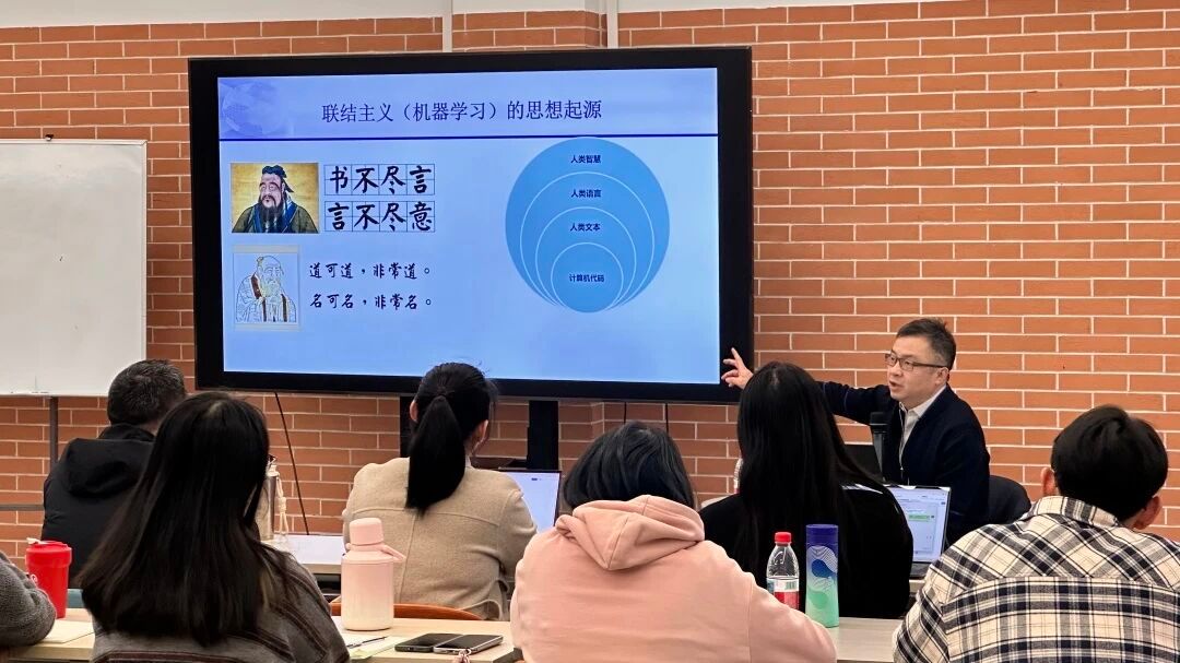 从联结主义、符号主义到行为主义的学派分野,到有监督学习、无监督学习、强化学习的底层逻辑,再到预训练大模型的“规模定律”与“涌现”现象,闵教授用丰富的案例和生动的比喻,为同学们构建了一个立体而扎实的数智化认知框架。