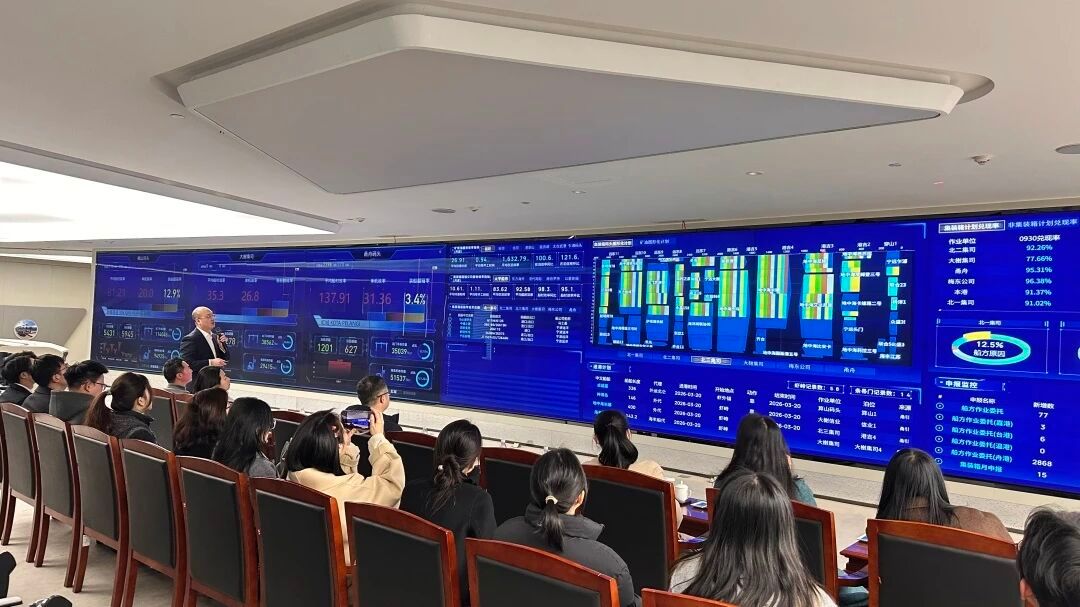 从船舶抵港到货物出运,从设备调度到安全监控,这套系统让港口货物的每一次流转都清晰可见。同学们亲眼见证了传统港口如何通过数字化手段实现“一屏观全域、一网管全程”的精细化管理。