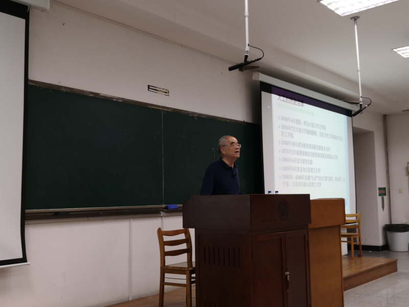 刘教授以幽默的方式开场。他说:前几年,网上流行一句话, “元芳,你怎么看?对大工历史,且听我慢慢分解。”大家都乐了,欣然接受了刘教授的幽默。刘教授声音不大,但可以看出他已经尽全力,从他的声音里、他的眼神里,我能够感受到他对党、对国家、对大连理工大学的感情和对前辈的敬重。