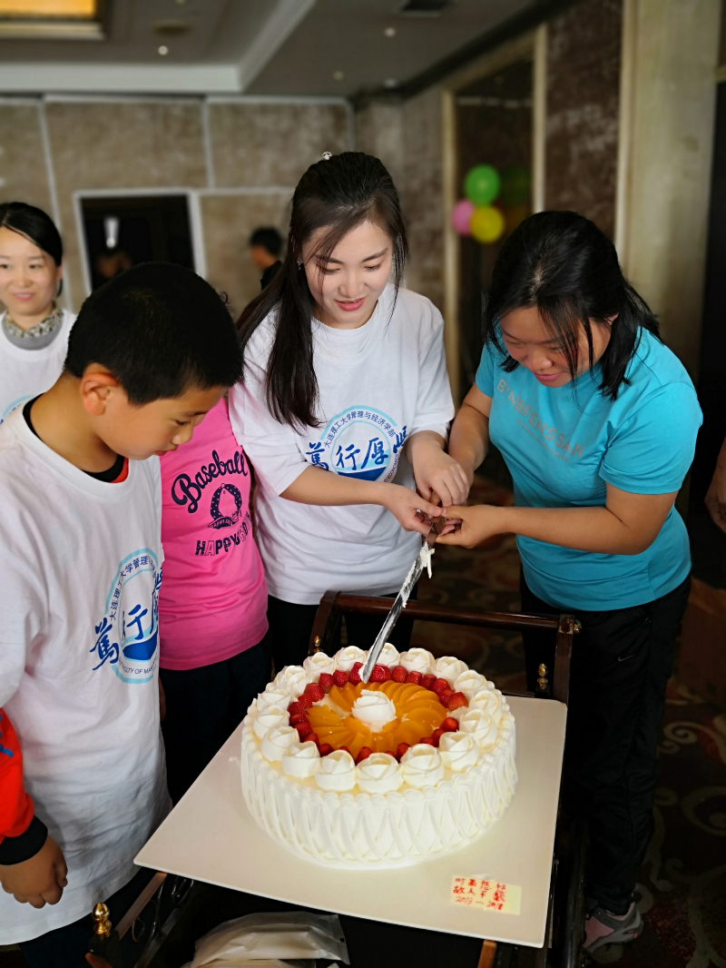回到聚会的饭店之后,五周年庆典活动正式开始。活动由班委成员祝明明主持,老班长陈奇先做了发言,孙力老师向大家通报了管经学部近年发展取得的各项成绩,祝福同学们的友情地久天长,并祝福MBA二代们茁壮成长!随后,孙力老师给小朋友们发放了礼物。当节日主题蛋糕被缓缓推进来后,立刻吸引了全场的关注,刘少双同学作为班级代表,发表了感言。