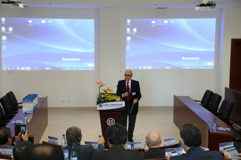 图2:大连理工大学管理与经济学部国际咨询委员会主席Joseph Alutto先生为精英院长论坛致辞。
