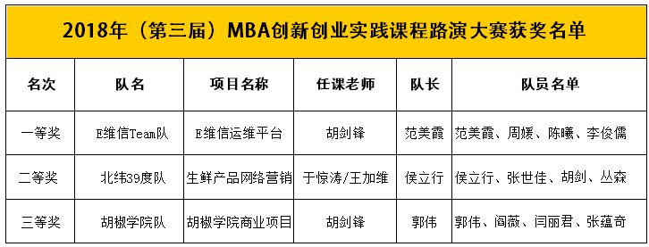 2018年10月28日上午,第三届MBA创新创业实践课程路演大赛在管经学部B312顺利举行,经过上午八支队伍的角逐,最终有三支团队在路演大赛中获奖。他们分别是由胡剑锋老师指导的E微信Team队和胡椒商学院队,以及于惊涛和王加维老师指导的北纬39度队。