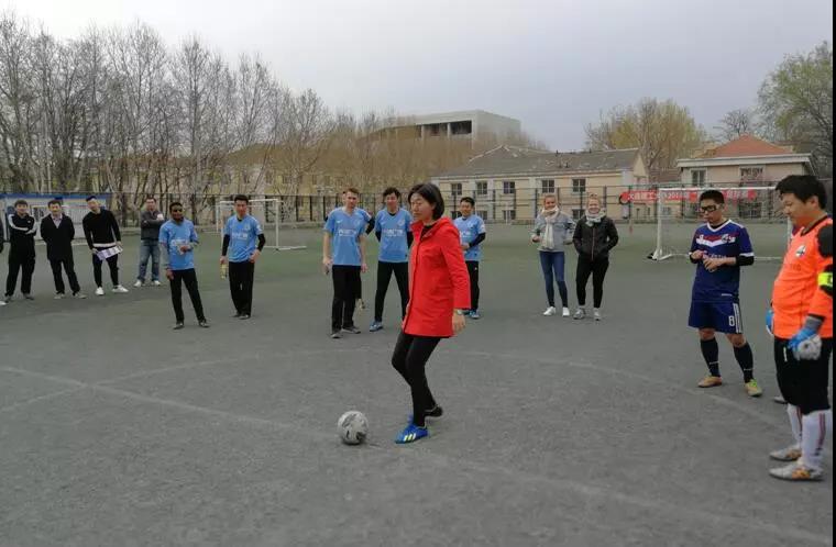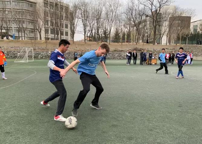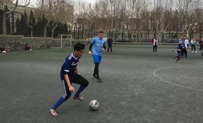4月20日,天气阴,但阴郁的天气难挡同学们对足球的热情。下课铃想起,同学们相伴来到球场,提前做起热身运动,同时彼此沟通交流着。