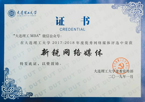 近日,大工2017-2018 年度优秀网络媒体榜单发布,经济管理学院的大连理工MBA微信公众号喜获“新锐网络媒体”奖项!这也是经管学院此次评选唯一的一个获奖公号。