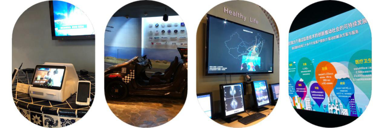 在东软全国产品经理张昕秋的引领下,我们来到了东软的企业展厅,在这里进一步加深了对东软集团业务的了解和学习。东软与世界一流的跨国公司开展合作,从电动车载信息娱乐行业、网络安全产品、数字医疗产品、健康管理服务平台等到与我们生活息息相关的如ID信息识别系统、远程诊疗平台等IT产品随处可见。