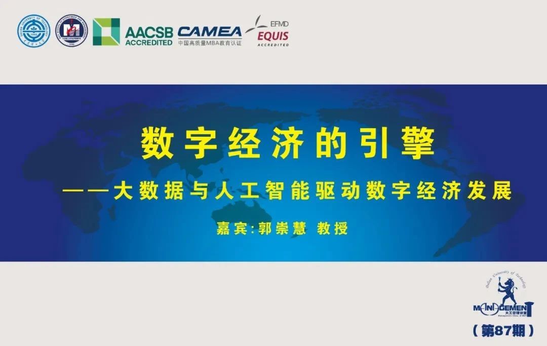 9月21日,经济管理学院MBA教育中心为同学们上线了系列讲座,其中系统工程研究所郭崇慧教授为大家带来了主题为《数字经济的引擎--大数据与人工智能驱动数字经济发展》的讲座。郭教授深入浅出地讲解了大数据、人工智能、数字经济的发展背景。通过郭教授图文并茂的讲解,同学们对大数据的定义和关键要素、人工智能的演进和分类,两者与数字经济的关系有了更加深刻的认识。