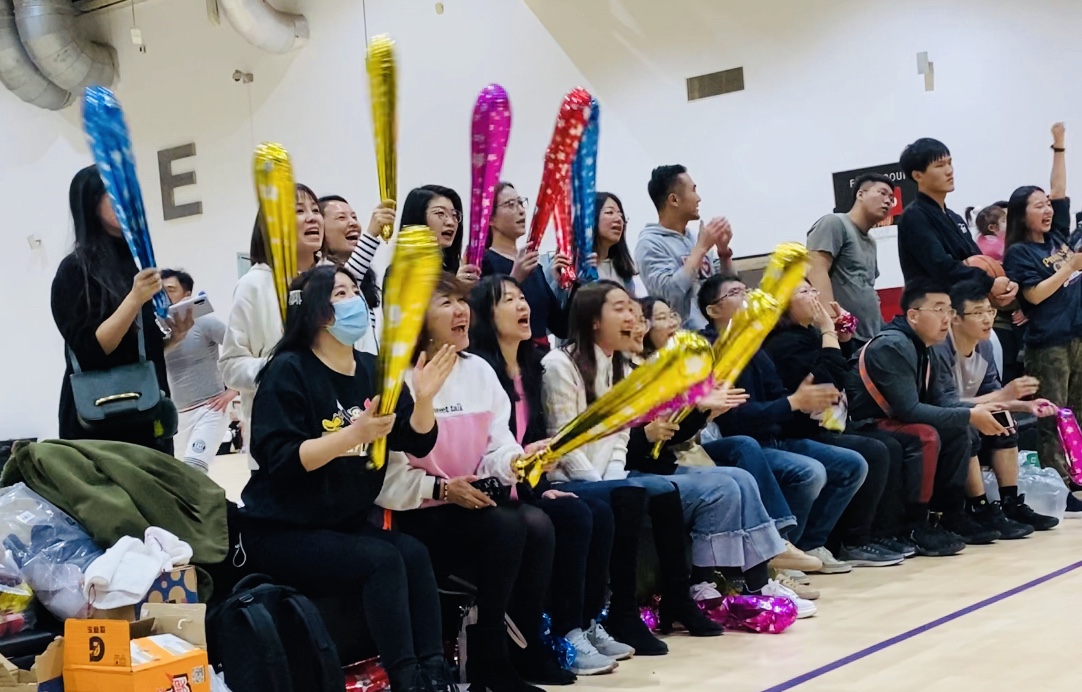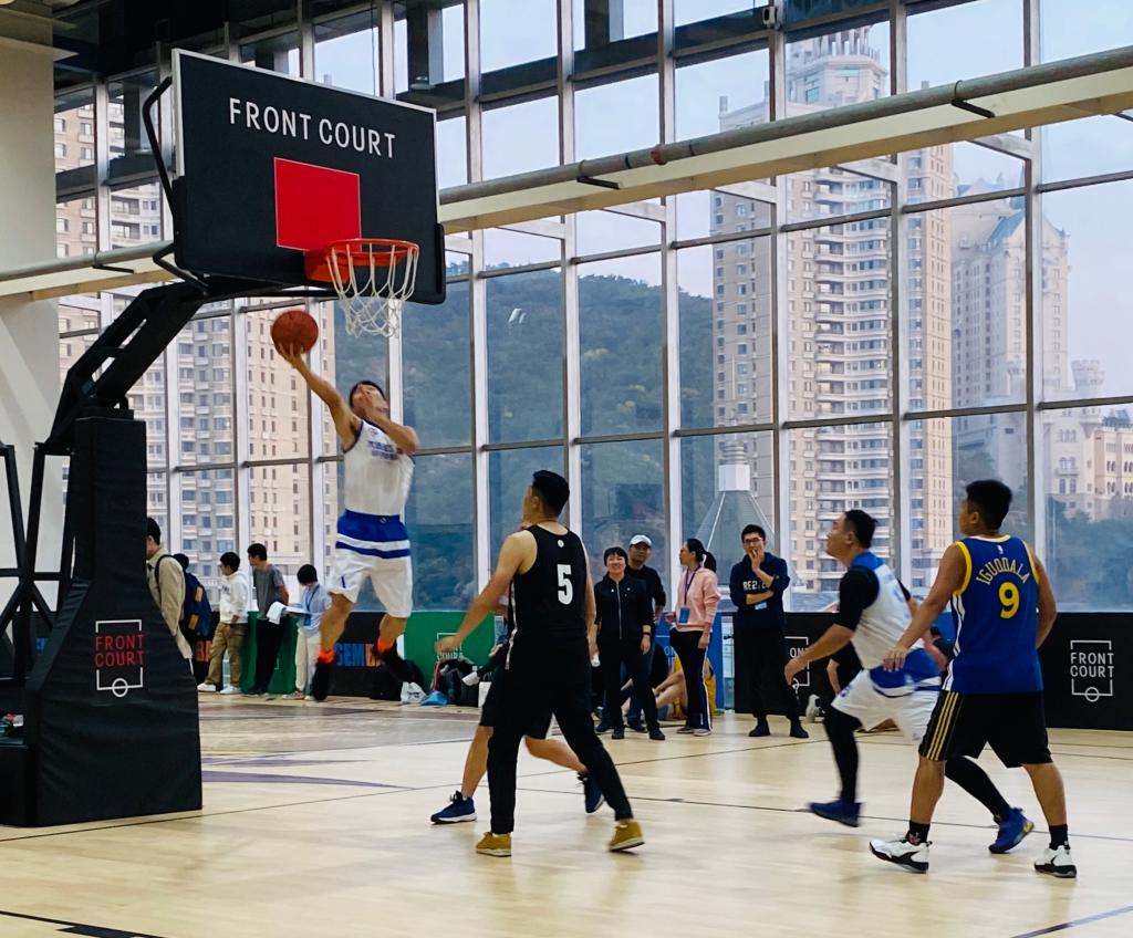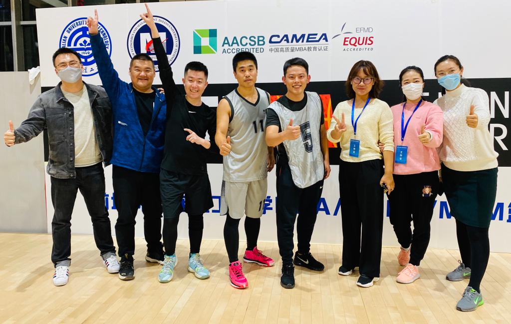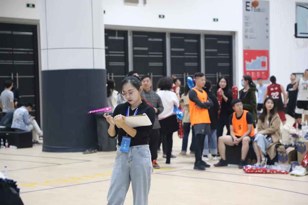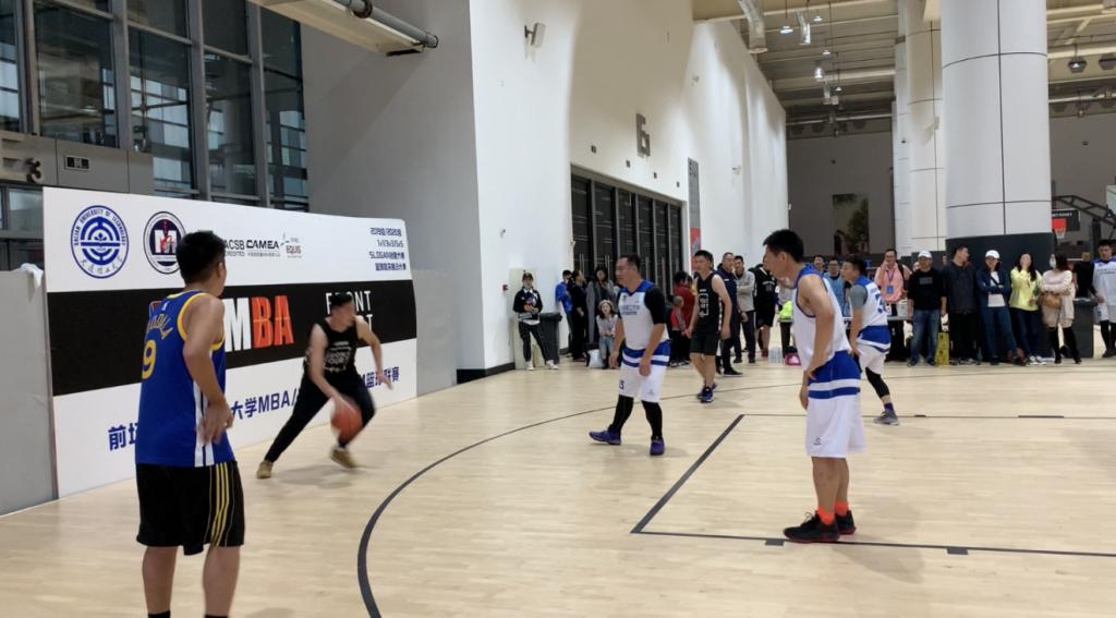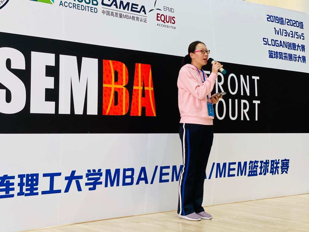 同时,2019级MBA2班班主任吴灏文老师也来到现场为大家加油。经济管理学院田一辉老师、陈阵老师、张宇老师、范辞涵老师、汤士慧老师组成教工联队在参加开幕式后也参加了3V3的赛事。