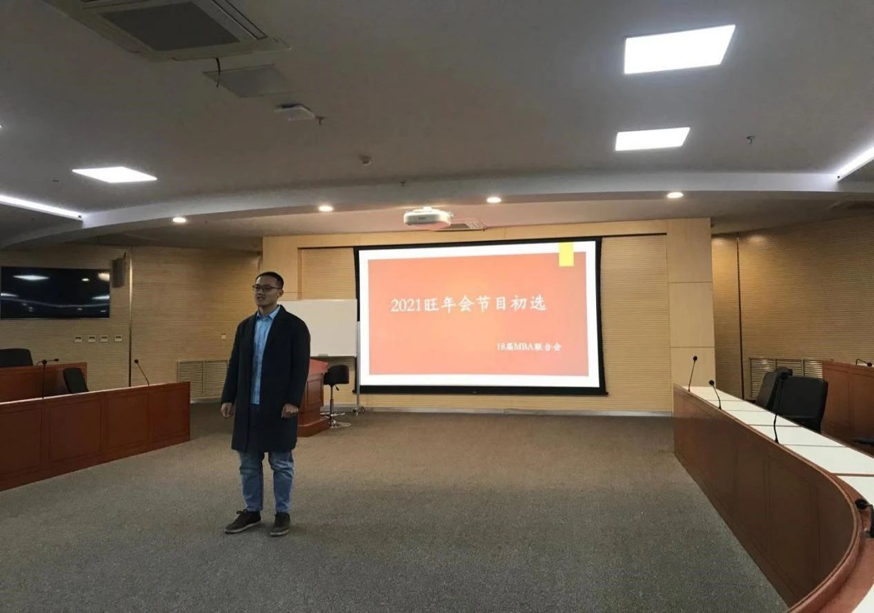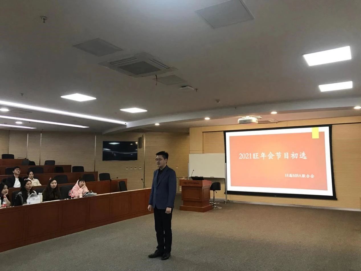 一年一度MBA盛宴——2021旺年会即将拉开序幕。11月8日晚,主持人选拔赛在经管学院A301举行。本次旺年会主持人选拔赛得到了2020级新生们的积极参与,共有来自7个班的13名同学来到了现场。其中有下课后匆匆赶来的同学和网络参与选拔的同学,可见此次活动在同学们心中的重要性。
