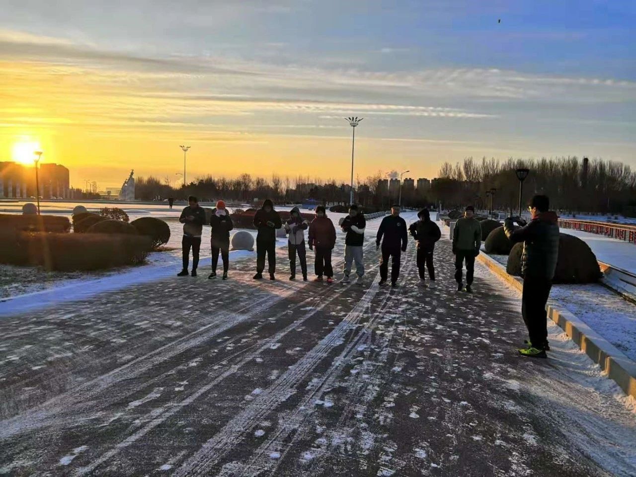 7:00集合,大家相聚合影留念,热身之后,开启了7.5公里环湖跑。初冬的沈阳,已经寒风瑟瑟,大家的装备既要保暖,又要轻便。有经验的runner领跑在前,有激情的newer不甘落后,整个过程历时60分钟,全队共同完成任务,为活动画上了圆满的句号,体现了大工人拼搏进取、勇往直前的精神。