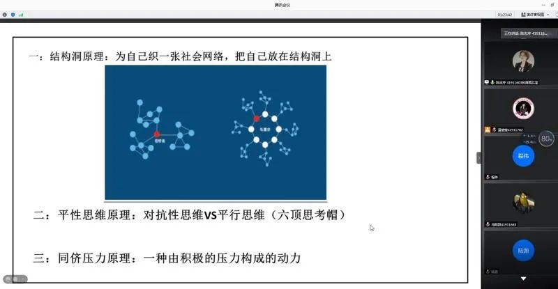 11月21日晚,历经了一个月的筹备,由2019级MBA9班主办的DUTER直播如期上线,两位职场美女陈志芹和王佳出席直播间,就私董会和职业妆两个话题与现场70余名同学进行了一次深入交流。同学们对私董会和职业装有了更深入的了解。