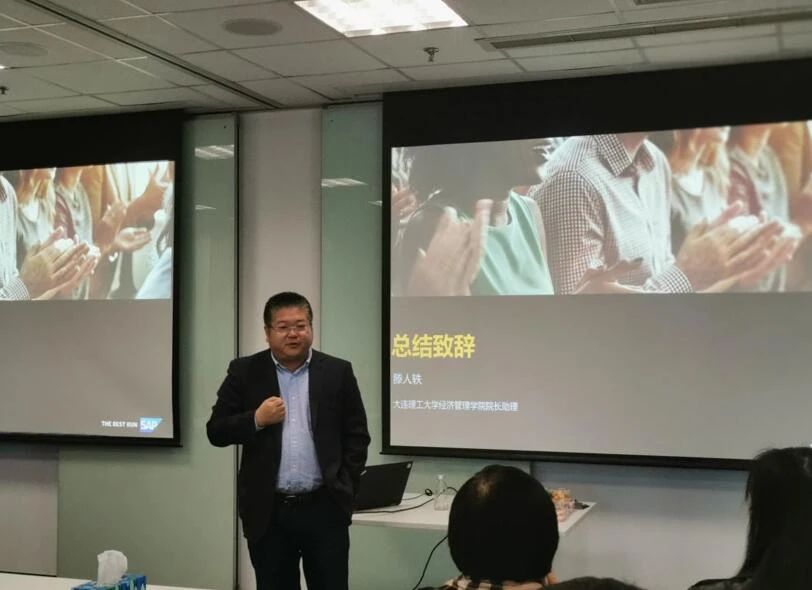 最后大连理工大学经济管理学院院长助理滕人轶老师为本次企业行做总结致辞。滕老师对SAP大连研究院为本次活动的精心安排表示感谢,并鼓励MBA同学们走出校园、深入企业进行实地调研,把所学的理论知识与企业实践有机结合,努力成长为应用型管理人才,在未来为企业创造更大价值。