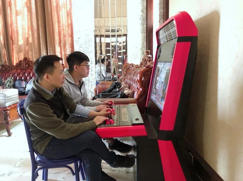 两位大朋友的电玩打得异常专注,鹿死谁手还需拭目以待。