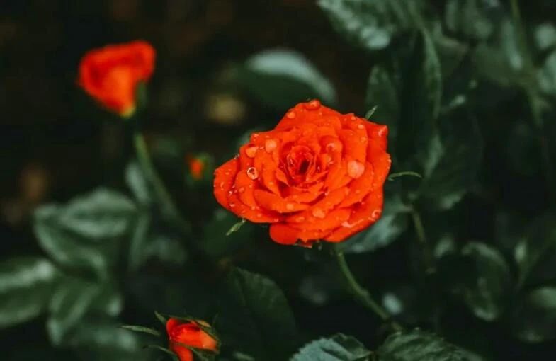 下雨过后,此时天上仍有云朵,花朵上残留水珠,光线较为柔和,可以拍下带着水珠的花朵的娇嫩欲滴感,如果有微距镜头可拍下水滴在花朵上的大特写。