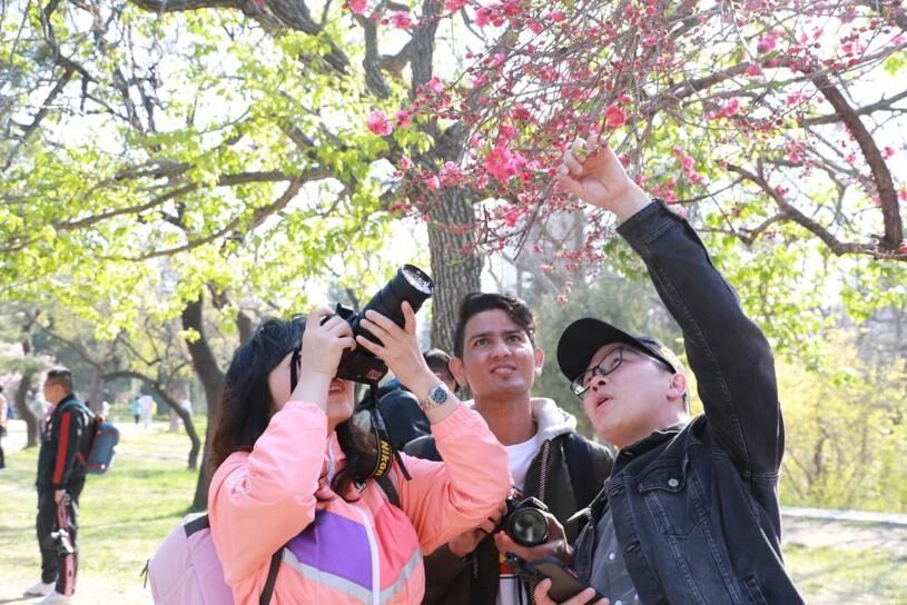 晴空万里,桃红柳绿,4月18日下午,拾光摄影俱乐部组织了春季首场户外摄影活动,10余名同学一起走进劳动公园,赏花团锦簇,享春色美景,用相机记录下这美丽的芳菲四月。