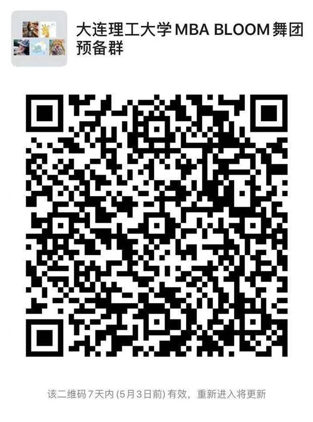 大连理工大学MBA BLOOM舞团是下属大连理工MBA同学会的活动组织,旨在为热爱舞蹈的校友提供以舞会友的交流平台,会员通过舞蹈达到强身健体、培养自信、陶冶情操的目的。“Bloom”,寓意让每位会员在舞蹈中能够绽放自己的魅力,绽放自己的青春。