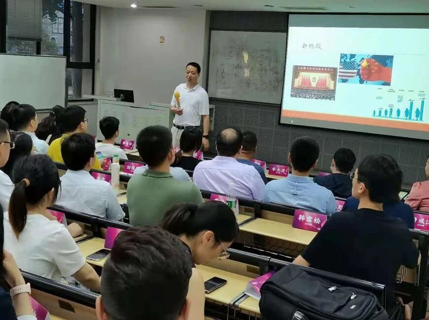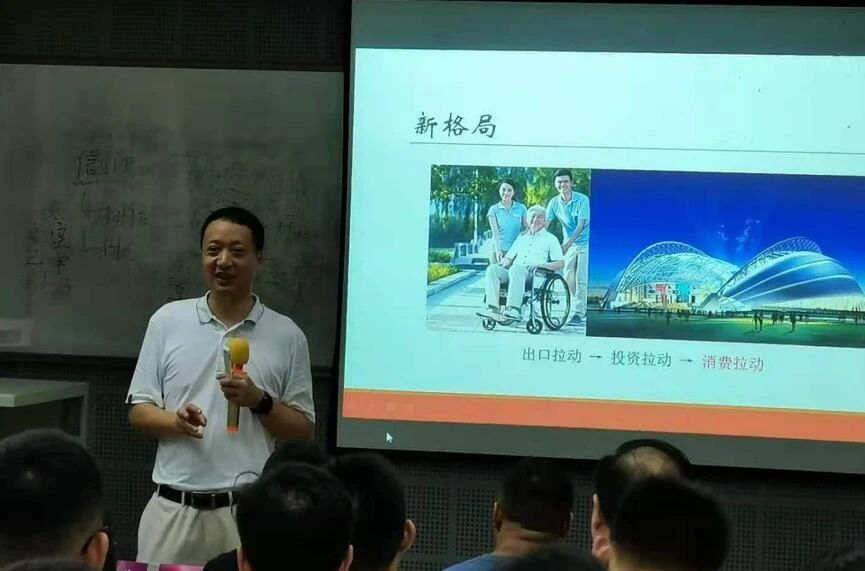 心怀梦想,汇聚一堂,聆听谆谆教诲。讲座吸引了100多名校友,整个阶梯教室座无虚席,大家的热情点燃了老师的激情。丁老师从三个部分由浅及深、层层递进地向大家讲解了当前的经济形势以及其背后存在的逻辑。第一部分:经济的长远蓝图。介绍了国家“十四五”规划的主要内容,重点阐释了新阶段、新理念、新格局的核心要义。