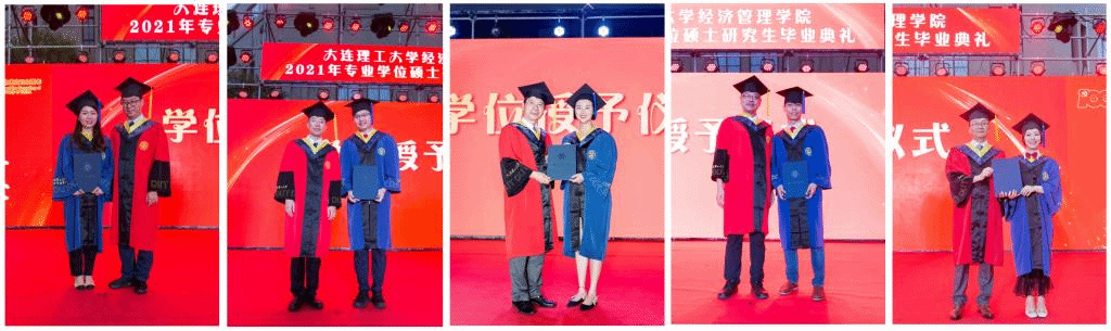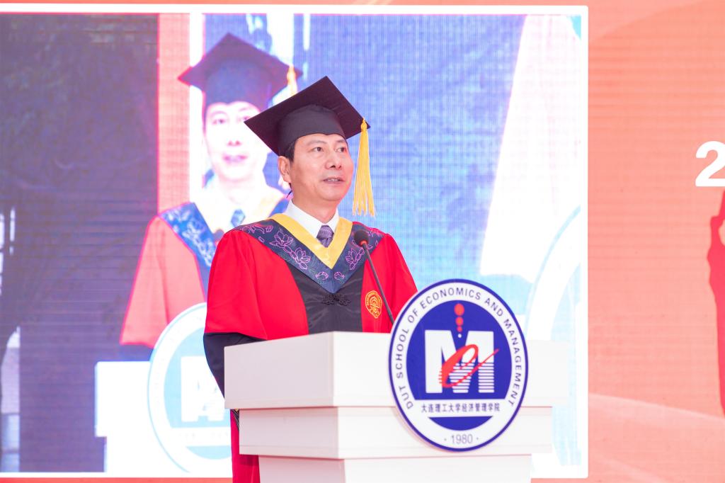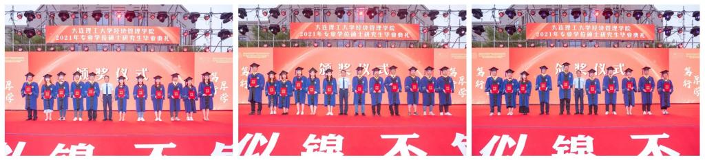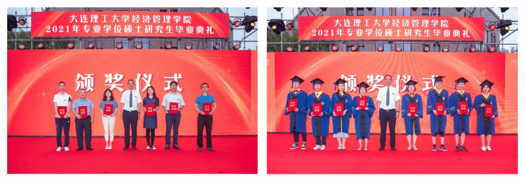 2021年7月16日18:00,大连理工大学经济管理学院2021年专业学位硕士研究生毕业典礼暨学位授予仪式在大连理工大学经济管理学院广场隆重举行。经济管理学院院长朱方伟教授,党委书记叶鑫教授,党委副书记兼副院长、纪委书记张治宝老师,副院长宋金波教授、孙玉涛教授、李先能教授及部分教师郭崇慧教授、杨光飞教授、张令荣副教授、商华副教授、苏振东副教授、吴灏文副教授、李瀛副教授、于淼副教授、汪玥琦老师出席了典礼仪式,与现场四百余名MBA/MEM/MPM毕业生齐聚一堂,共同见证了这一喜悦而荣耀的时刻。本次毕业典礼由MBA/EMBA教育中心副主任张秋艳老师主持。