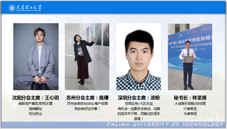 第十九届MBA联合会副主席王心玥、陈倩、涂盼分别介绍了沈阳分会、苏州分会和深圳分会的年度工作计划。
