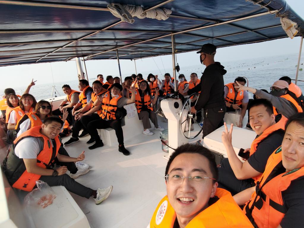 之后是游艇烧烤大派对,班委会的精心策划圆了同学们一边撸串一边上课的美好梦想。坐上游艇,喂着海鸥,配合着酷炫的音乐,欣赏着夕阳下的海景,集体放飞自我!
