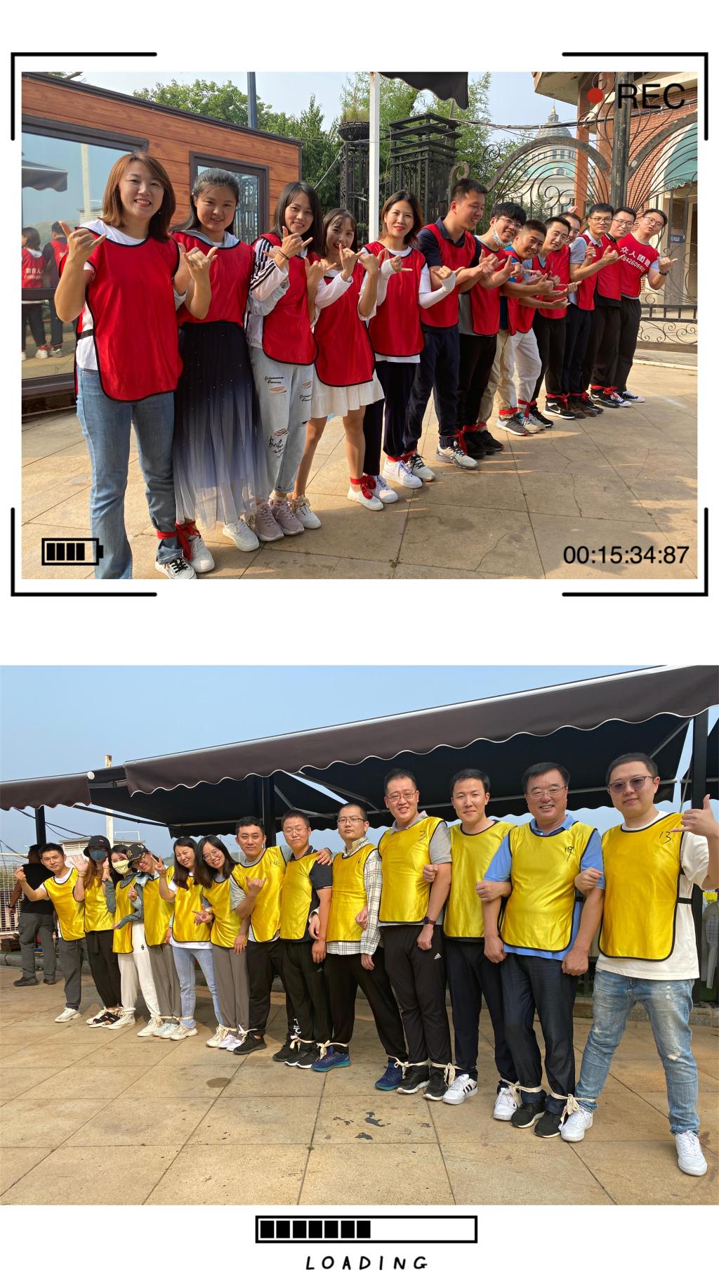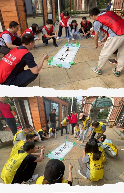 随后进行团建拓展活动,大家分成两组:西红柿(红)队、炒鸡蛋(黄)队,在短时间内定好各自队名、队呼、队歌。每一位同学都“身怀绝技”,在游戏和竞争中,展现了大六班同学的惊人智慧、组织能力和团结风貌。我们在集体游戏中相互PK,又相互协作,共同完成六班的书法处女大作。
