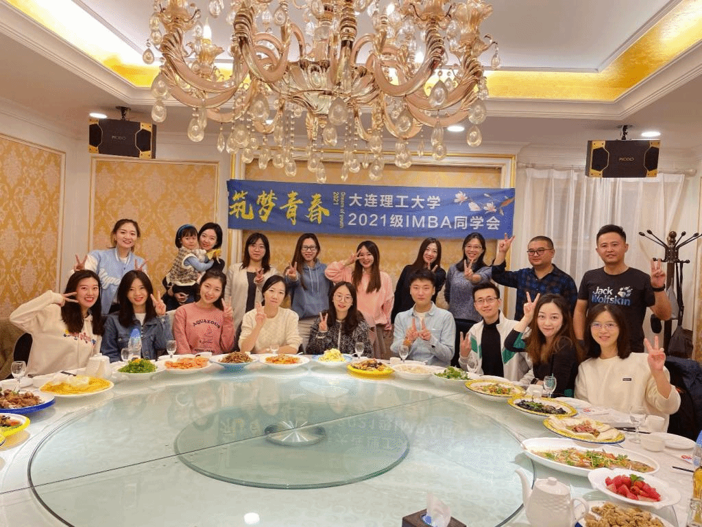 这一年我们经历了考试、面试、案例大赛。但是说起初识,那还是八月份的事了。第一次班级聚餐,有同学提起8月份I班的那次英文面试,大家纷纷回忆起当天的趣事。离开校园多年,同学们大多对自己的英语水平没底儿,第一次见面都没来得及互相认识,只是匆匆打了个照面。没想到,缘分还是让大家坐到了一个教室,从此我们拥有了共同的名字2021级IMBA,我们拥有了共同的口号——“筑梦青春”。