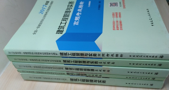 “工欲善其事,必先利其器”。5月底购买了一套2017年建工版教辅材料,包含4本《2017年一级建造师执业考试用书》,4本《2017年一级建造师执业考试复习题集》,4本《2017年一级建造师职业考试应试指南》,1本《2017年一级建造师建筑工程管理与实务高频考点精析》,1本《2017年一级建造师建筑工程管理与实务模拟试题及解析》,1套历年真题。