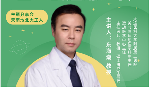 东海潮教授是大连医科大学附属二院运动医学中心主任,也是关节外科与运动医学科副主任,医学专业擅长运动医学、微创关节镜外科、人工关节置换。专题讲座围绕“运动的必要性”、“运动处方”、“运动注意事项”、“运动健康常见问题”四个主题进行讲解。