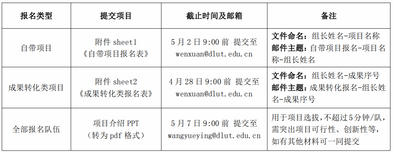 (2)组队申请学院提供的成果转化类项目,提交报名表后,学院回复邮件确认通过视为报名成功,可参与项目选拔,成果转化类项目简介详见学生微信群。