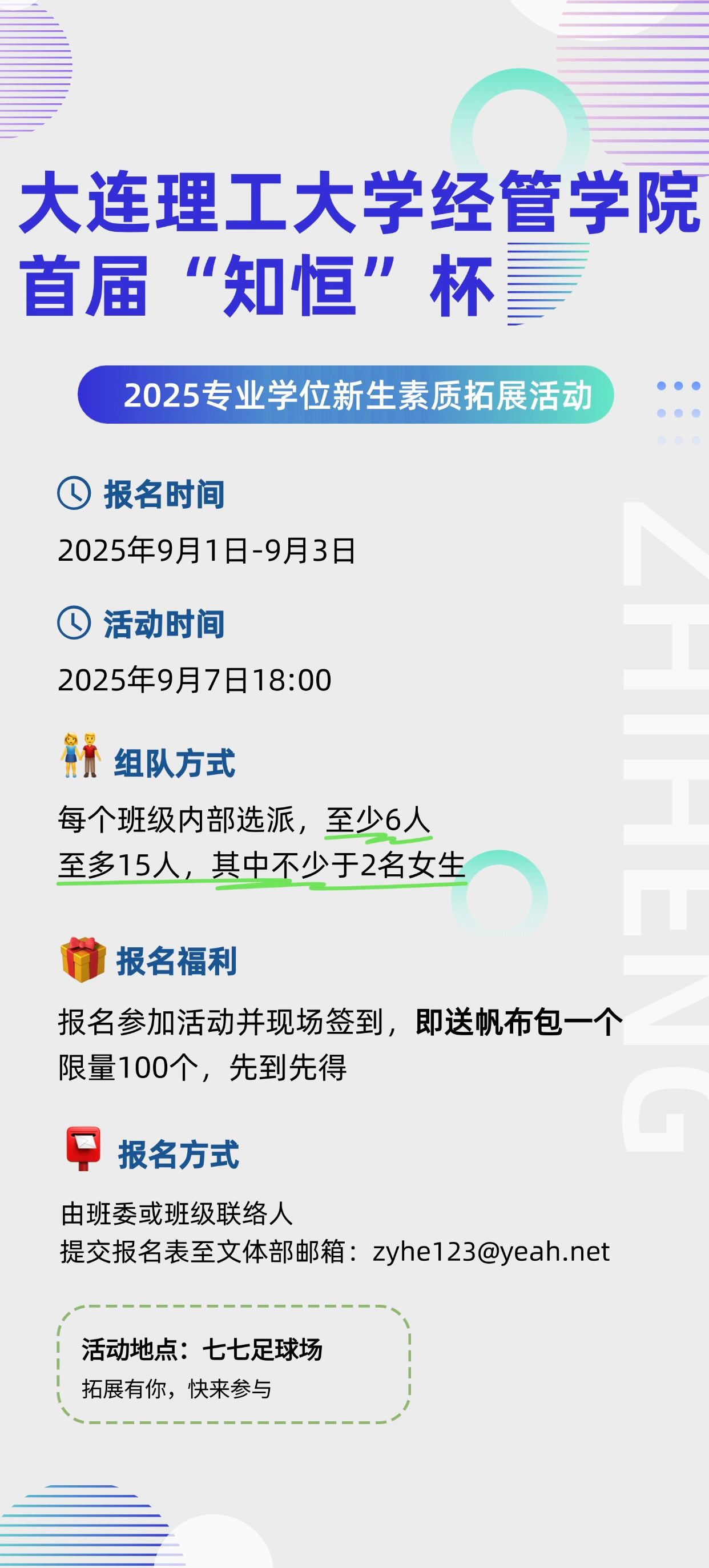 注意啦:比赛以班级为单位组队,每队至少6人,最多15人,并且要有不少于2名女生哦~