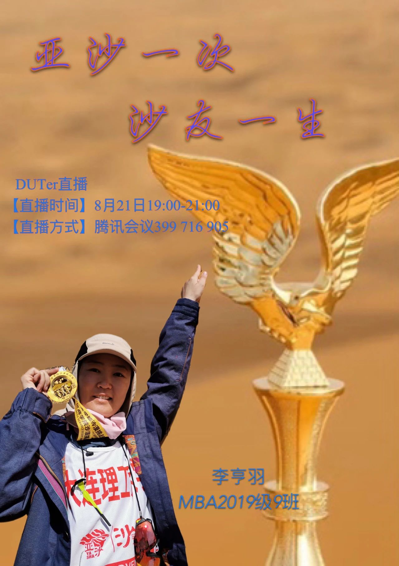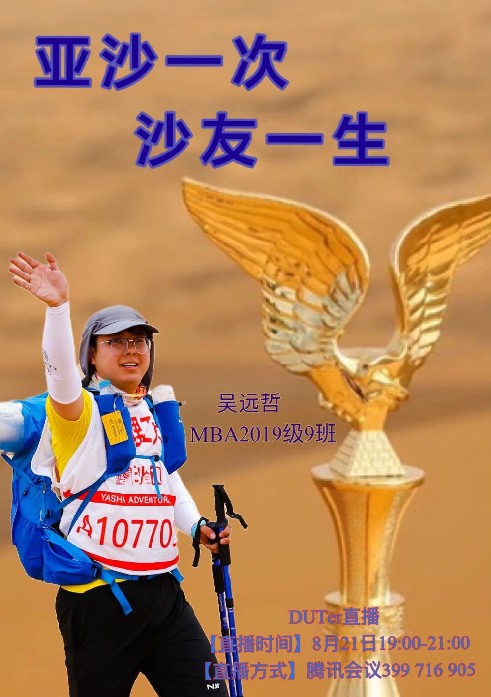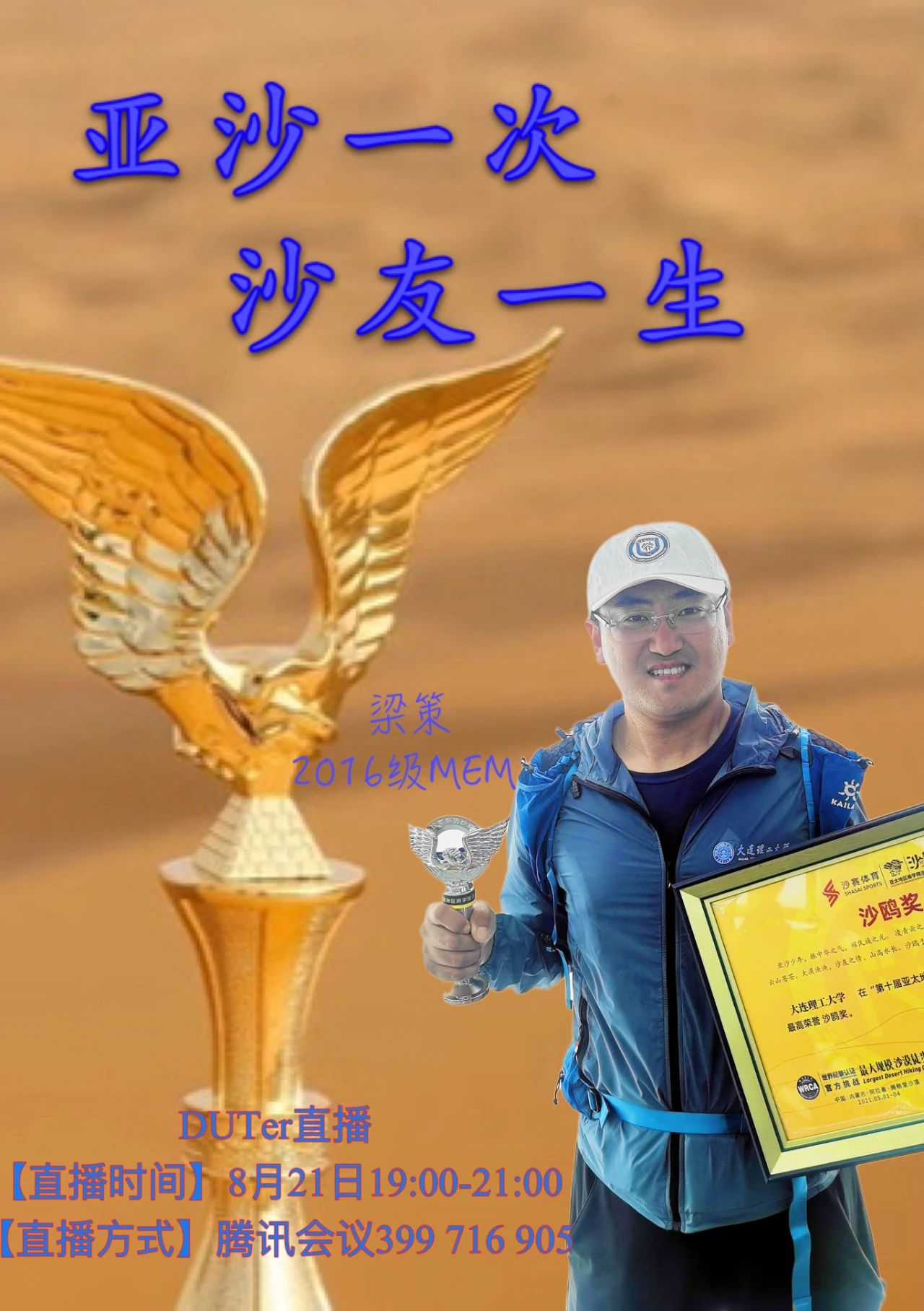 本期DUTer直播,我们有幸邀请到领队2016级MEM的梁策同学及沙友-2019级MBA 9班的耿童同学、李亨羽同学、吴远哲同学与我们分享从前期准备工作到赛事中的难忘回忆以及亚沙亲子团的那些事。