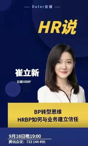 本期DUTer直播,我们请到了19级MBA5班的崔立新、MBA9班刘弈男两位同学,听“他们说”,直击HR及HRBP那点事!
