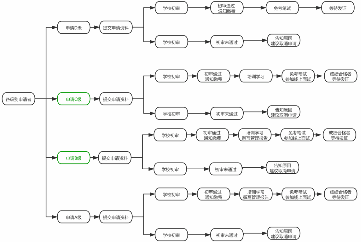 申请IPMA® A、B、C、D级别的学生需满足如下认证条件:
