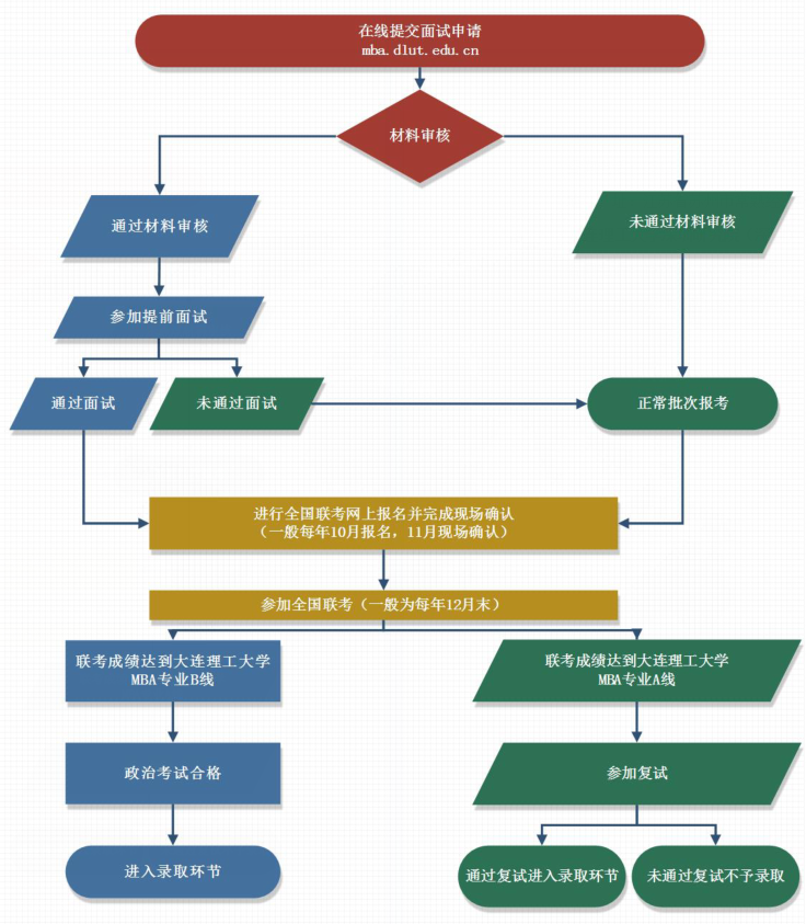通过面试考核的考生,当年联考成绩达到大连理工大学MBA专业B线且时事政治考核合格,可直接进入录取环节。