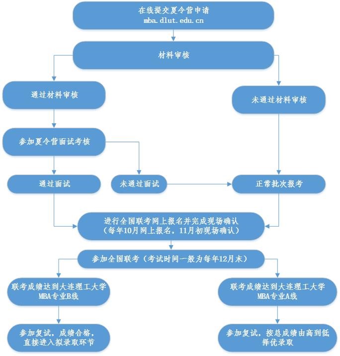 通过面试考核的考生,当年联考成绩达到大连理工大学MBA专业B线可进入复试,复试成绩合格且体检合格,可直接进入拟录取环节。