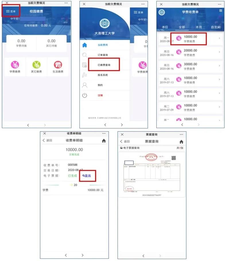 关注“大连理工大学财务平台”微信公众号,点击“学生收费”模块进入统一支付平台(手机版),登录成功后点击欠费进行学费缴费。