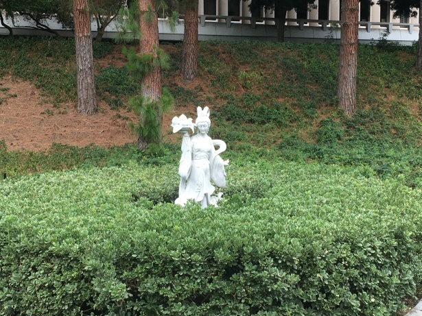 30日,周日,早晨起的很早5:30,之后一周都是这个时间,国内好像很少这个时候起来(尴尬)。天空阴沉、浓云密布,后来庆幸早晨是这样的天气,要不然真的会被晒坏。跟着老师一起行走于校园小道,探索发现一样的审视着校园的一草一物,惊奇的发现了一处中国古代人物的景点。下午则是跟随Joe一起参观了校园,在教室外的阳台上我们吃了一顿晚餐。