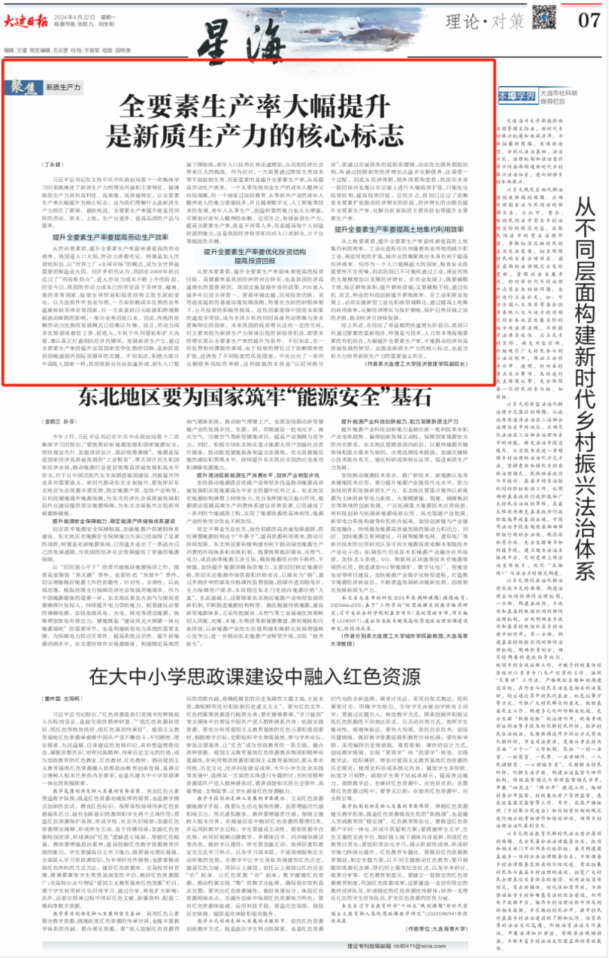 来源:《大连日报》(2024年4月22日)