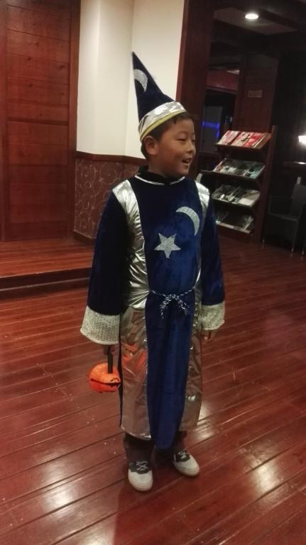 在享用完精美西餐之后,party迎来了趣味英文游戏的环节。我们在大屏幕投影出经典的英文台词让大家猜出对应的电影名字。经典的电影台词,不仅用词极为考究、优美,同时也富含人生哲理,比如肖申克救赎中的“It takes a strong man to save himself, and a great man to save another.”阿甘正传中的“Life was like a box of chocolates, you never know what you're gonna get.”教父中的“A man who is not a father will never be a real man”功夫熊猫中的“There is a saying, yesterday is history, tomorrow is a mystery. But today is a gift. That is why it's called the present (the gift). ”在这个环节中最闪亮的要数齐瑞轩小朋友,他同妈妈朱颖(大工15级MBA学生)一起参加了此次万圣节活动,答中了绝大多数的电影名,还为大家带来了一段英文即兴演讲,要知道瑞轩今年仅有9岁,却能说出如此地道、流利的英文,我们不禁惊呼快被他拍在沙滩上了!