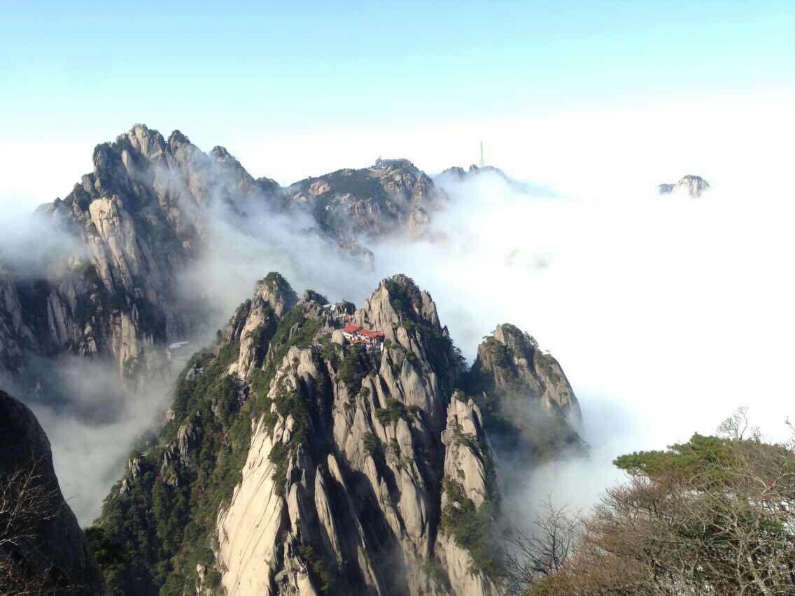 登山的乐趣就在于经历体力流失、身心俱疲之后,终于享受登顶的快乐。抵达光明顶,来不及让山顶的风吹干脸上的汗,黄山的奇松怪石,云海美景,就让我们完全忘记了酸痛和疲惫。拖着半残的身体追逐的阳光流云,在皑皑的薄雾里我们又能谈笑风生了!