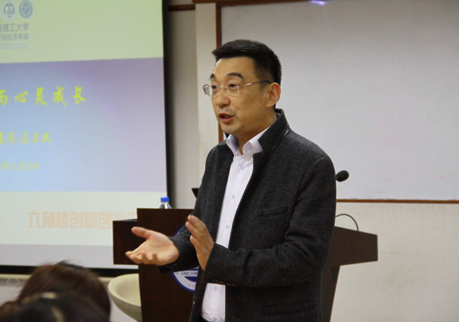 同样在这一天,大工创新创业六角楼论坛如约而至,与以往不同是此次讲座的题目是《赢与心灵成长》,这看似和创新创业关联不是特别密切的讲座就在大家的期待中开始了......此次讲座嘉宾是马立致董事长,他是韩国奥拉克(大连)医疗美容整形董事长、大连狮子会副秘书长、中国美发美容协会副会长、红星美业发展有限公司董事长。在这些名号中对我们大连人来说最熟悉的莫过于“红星美发”这个词了,没错!那是我们父母那个年代时尚的代名词,更会以在红星做个头发而沾沾自喜。如何让一个百年的国营老品牌红星美发重新焕发生机?马立致董事长跟我们分享了他十余年的美容美发行业的创新创业成长历程,和他多年来的感悟,对“赢”的认识以及心灵的成长,受益良多。