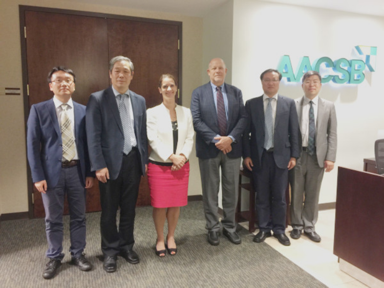 At the invitation of dean of University of South Florida Muma Business School Prof. Moez Limayem and the president as well as CEO of AACSB (The Association to Advance Collegiate Schools of Business International)--- Mr. Tom Robinson, DUT deputy secretary of the Party committee and vice president Mr. SONG Dan paid a two-day visit to University of South Florida and the headquarter of AACSB. Dean of DUT Faculty of Management and Economics, Prof. SU Jingqin and other two representatives --- Prof. SONG Jinbo and Prof. SUN Yutao came alongside.